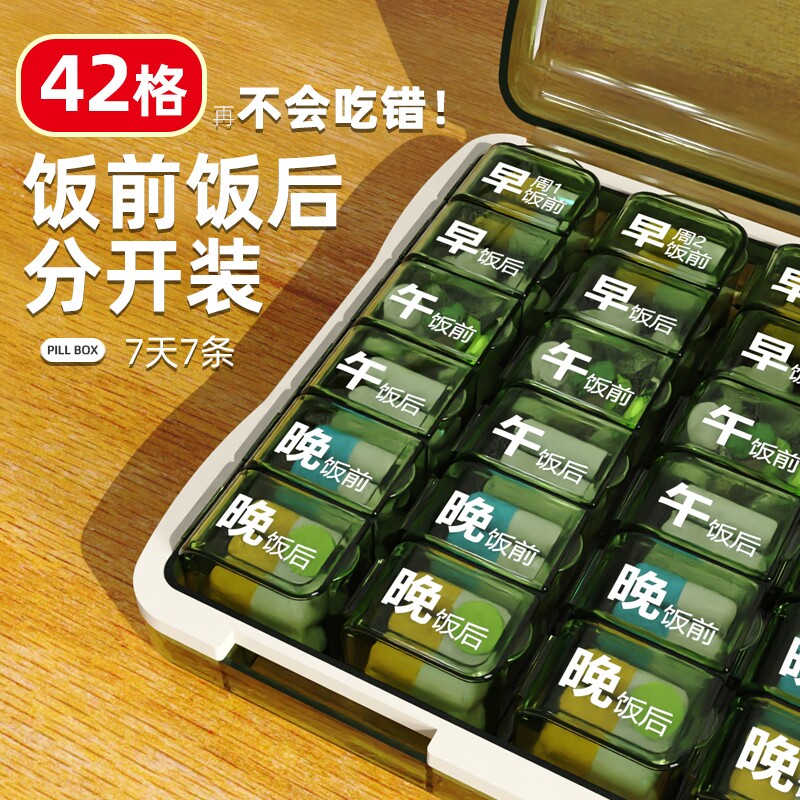 抗菌药盒便携分装一日三餐密封防潮一周七天便携式随身药品收纳盒