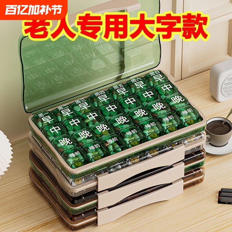 老人药盒一个月30天分药盒便携早中晚一周大容量药品吃药提醒盒子