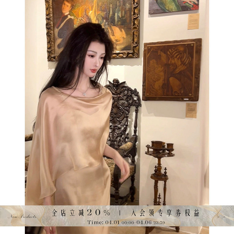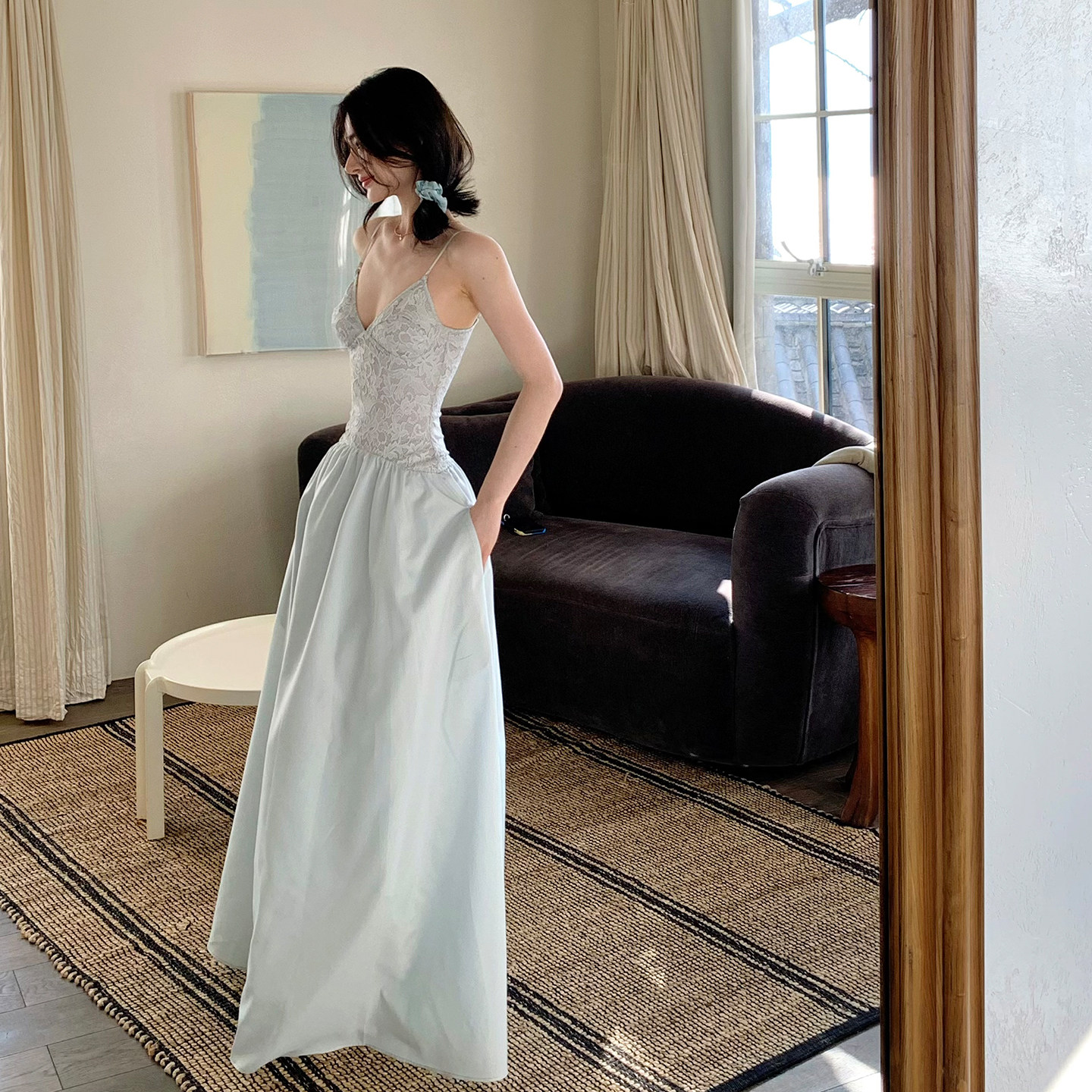 西町村屋流光裙法式挂脖鱼尾吊带裙女夏气质长款连衣裙XXAB10007