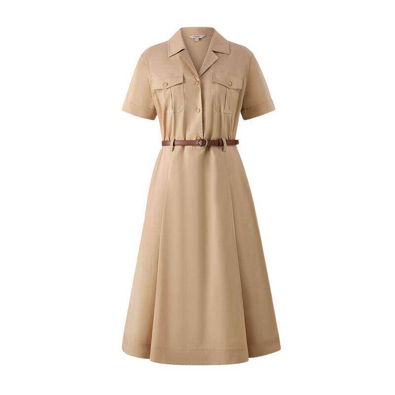 Eland衣恋连衣裙女工装风气质V领正肩a字裙摆短袖显瘦裙子夏季