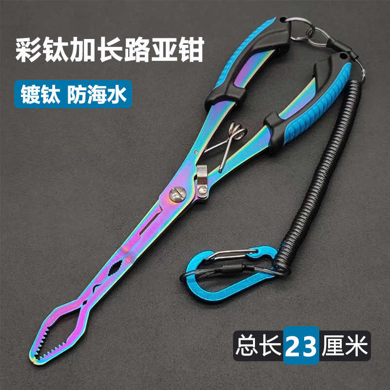 不锈钢多功能路亚钳剪线直弯嘴钳钓鱼钳子摘钩钳加长取钩器控鱼器