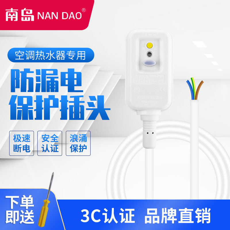 南岛品牌漏电保护插头热水器智能马桶毛巾架空调开关带电源线1.5/