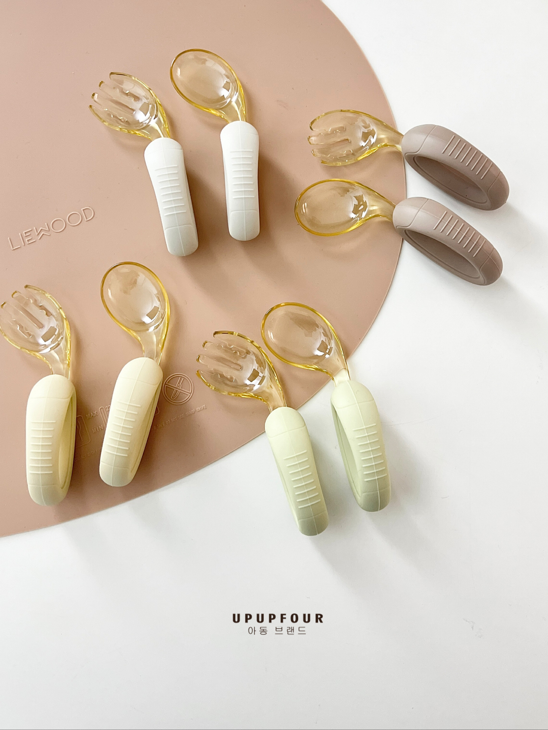 upupfour出口宝宝吃饭训练勺儿童餐具辅食硅胶PPSU弯头叉勺套装