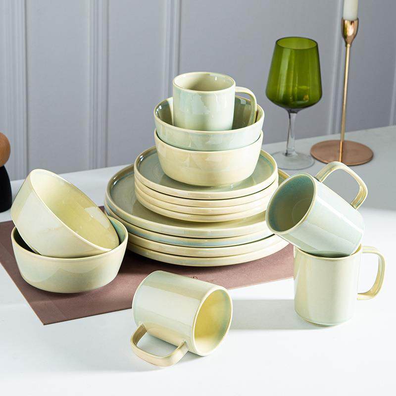 外贸出口窑变工艺16件套陶瓷餐具创意餐厅家用碗盘组合杯子套装