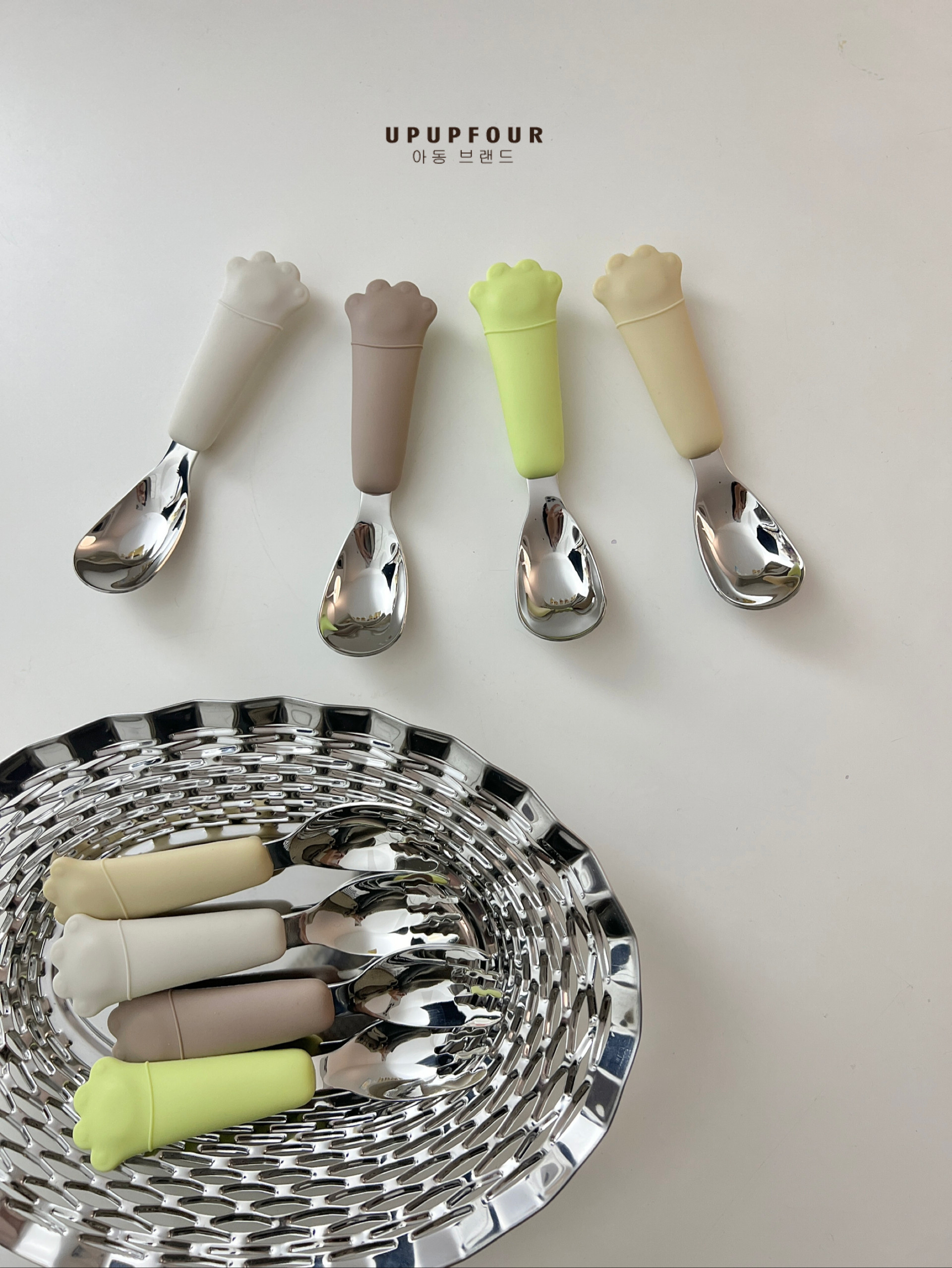 upupfour出口宝宝吃饭训练勺儿童餐具辅食316不锈钢硅胶叉勺套装