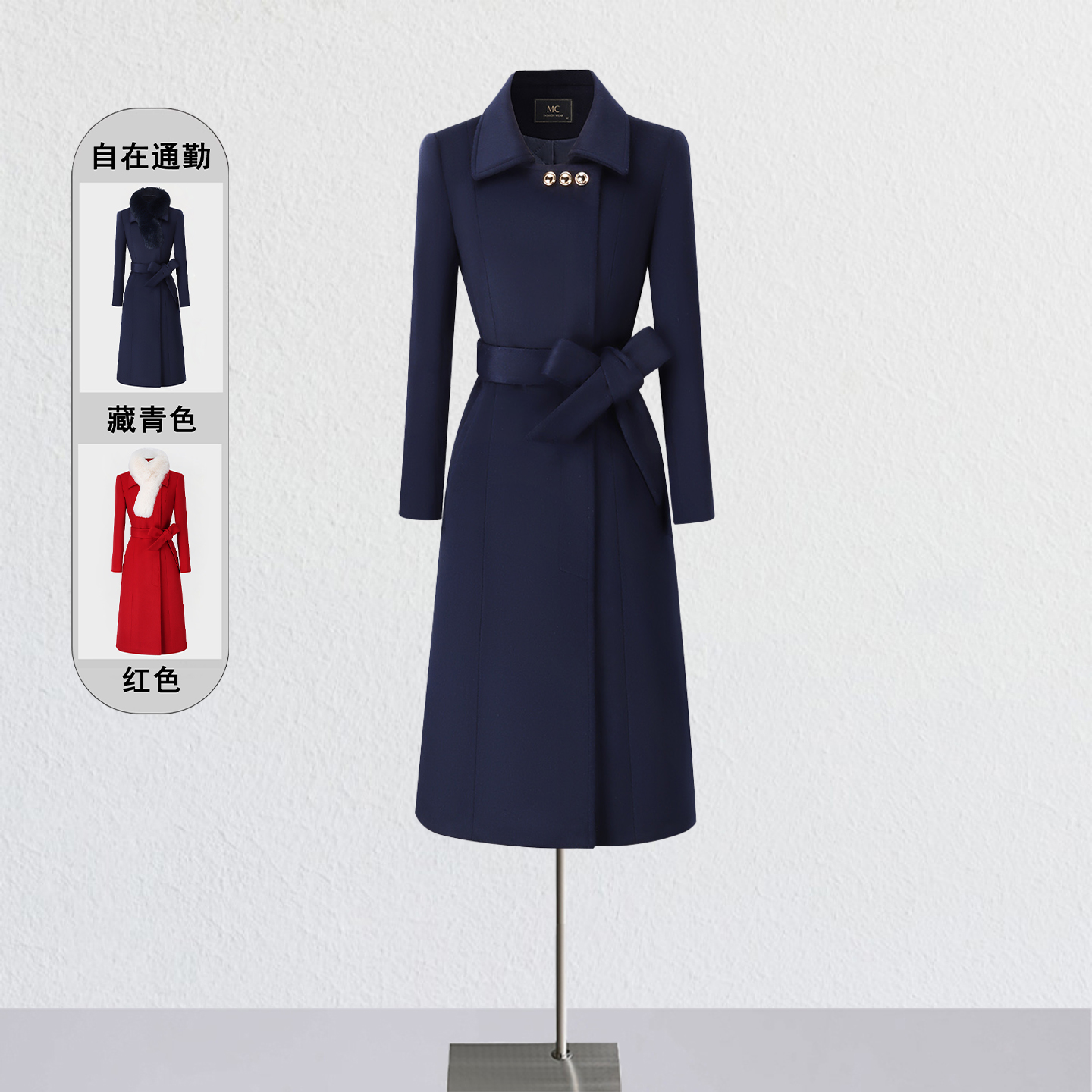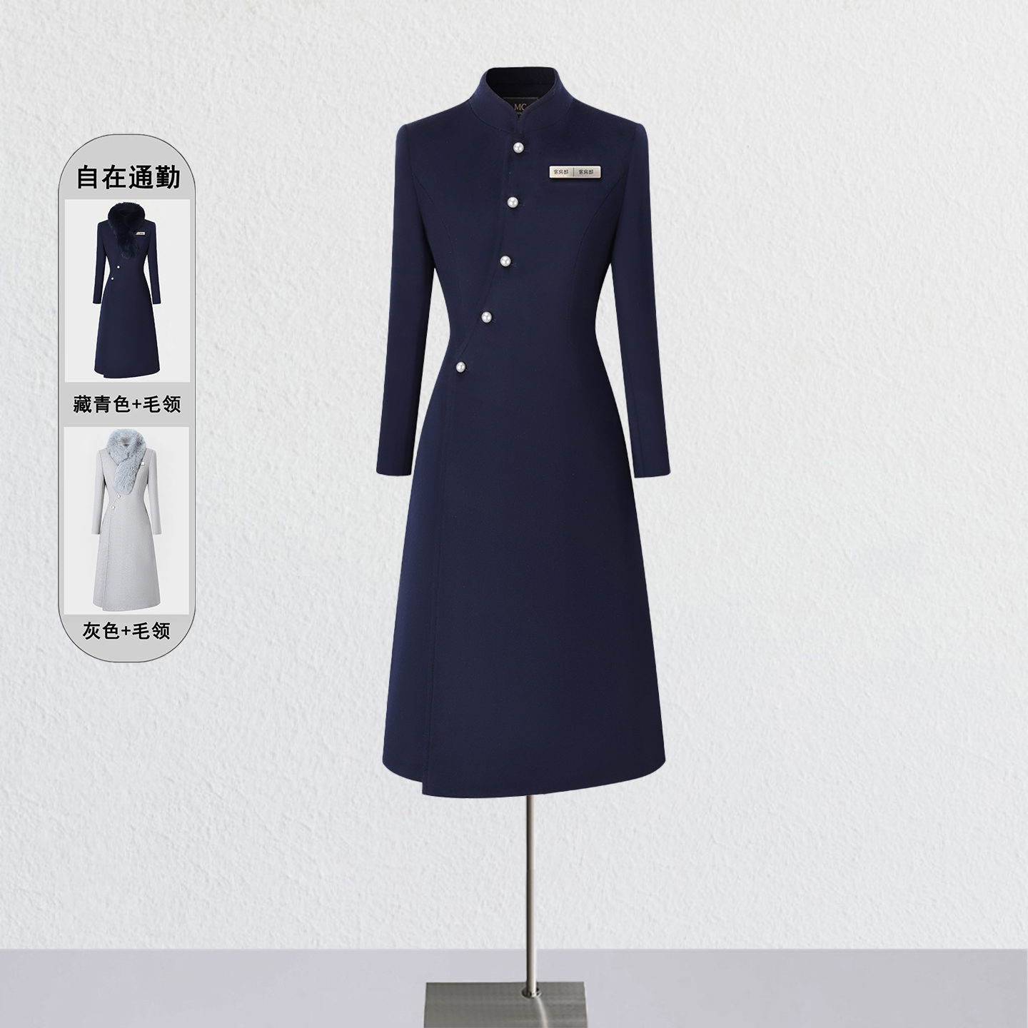 藏青职业羊毛呢大衣加棉售楼部4S珠宝酒店物业医美前台工装秋冬女