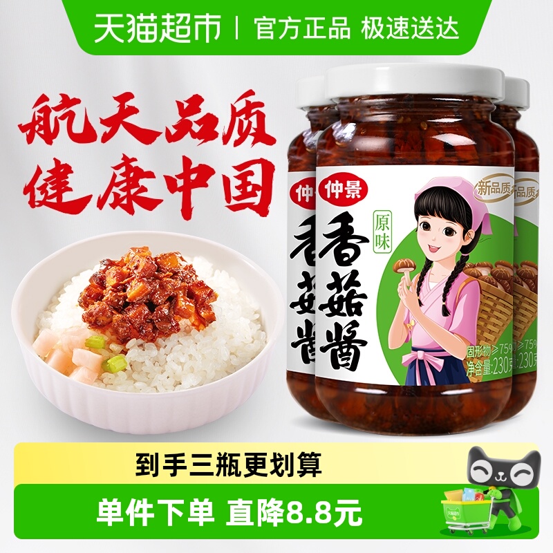 仲景香菇酱原味230gx3瓶拌饭拌面蘑菇酱暴下饭菜夹馍炒饭菌菇酱料