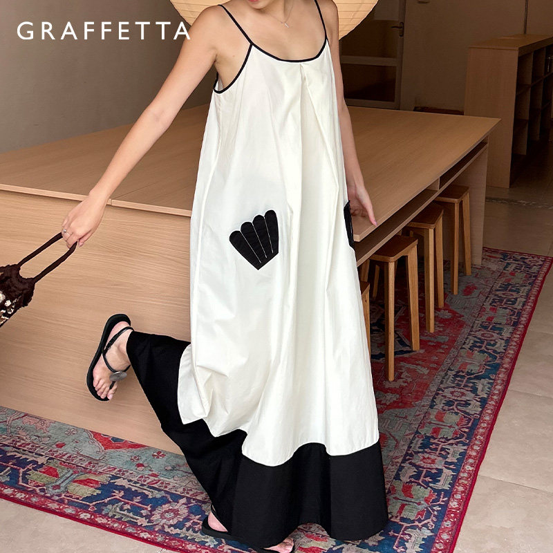 GRAFFETTA明星同款贝壳吊带度假长裙 原创设计宽松显瘦优雅大露背