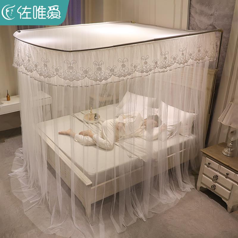 u型伸缩蚊帐家用支架落地加厚加密免安装公主1.5m1.8米折叠三开门
