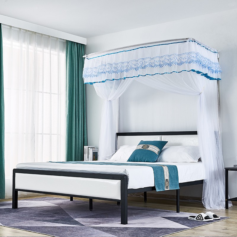 U型伸缩蚊帐支架落地公主风1.5m 家用1.8m床蚊帐加密加厚纹账