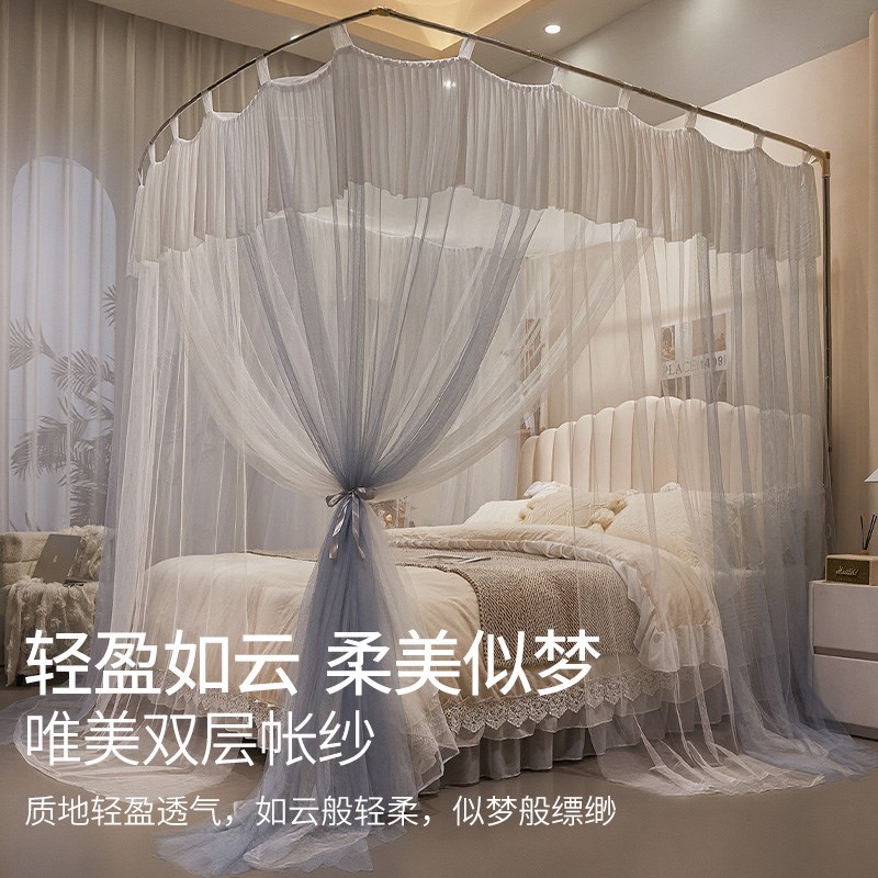 u型伸缩蚊帐家用卧室2025新款高级公主落地导轨道免安装纹账1米8