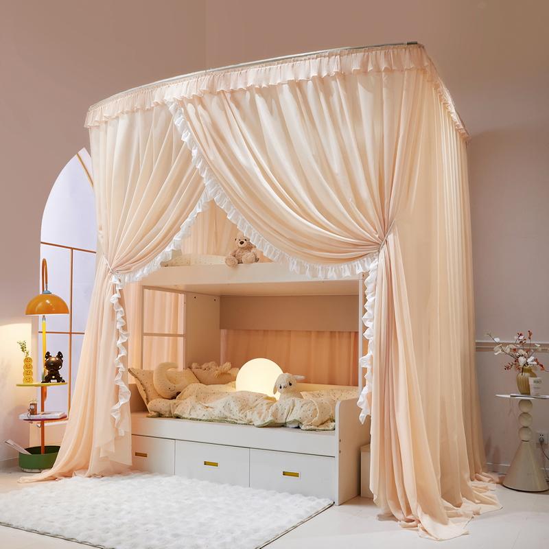 2025年新款u型伸缩蚊帐家用卧室落地轨道免安装纹账公主床帘幔纱