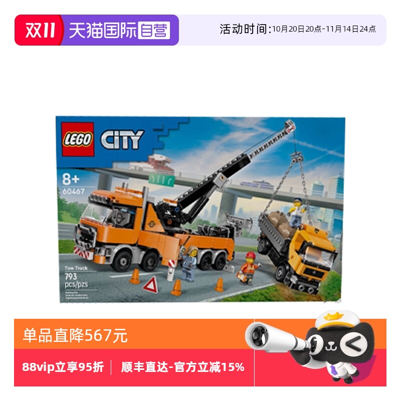 【自营】乐高城市组系列60467重型救援拖车男孩拼搭积木玩具礼物