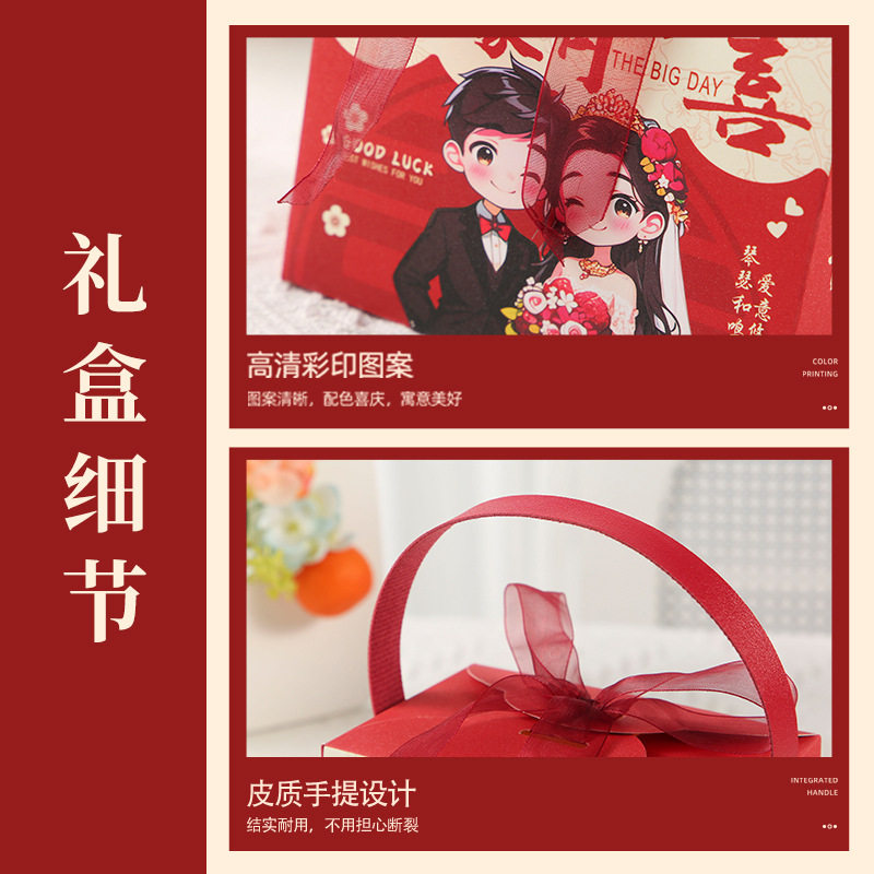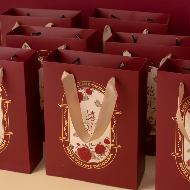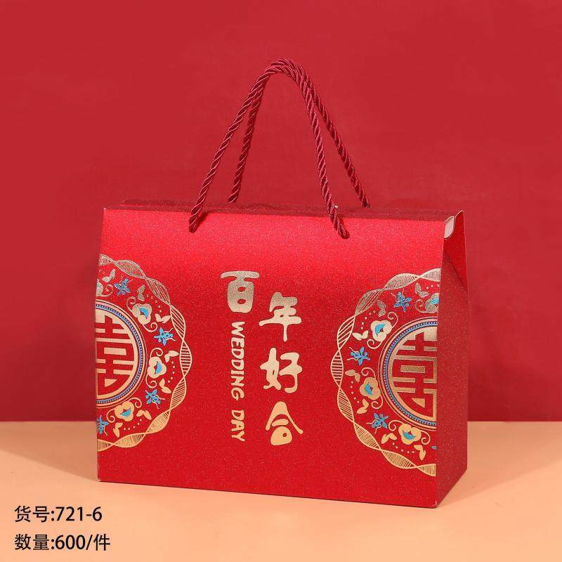 结婚红色小礼品袋嫁妆手提袋伴手礼袋子喜庆纸袋订婚礼婚宴喜糖盒