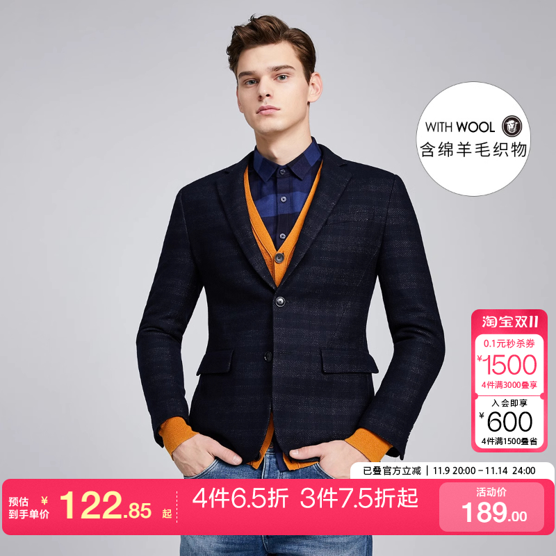 [专区到手1折起]绫致SELECTED思莱德秋冬含羊毛面料格纹修身西服