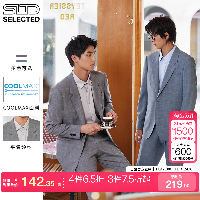 [专区到手1折起]绫致SELECTED思莱德都市纯色商务正装西装上衣男
