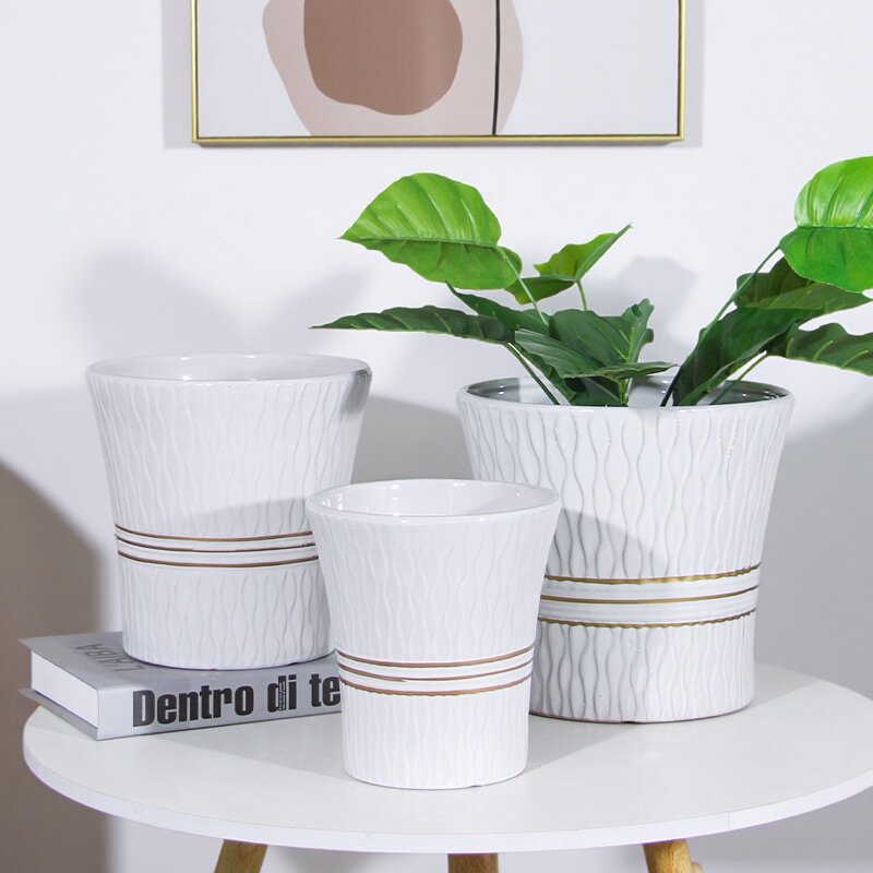 现代简约陶瓷小花盆轻奢高级感透气绿萝多肉家用客厅室内外带托盘