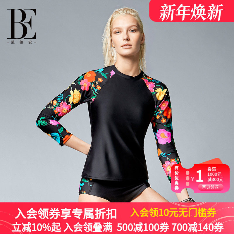 BE范德安泳衣女保守遮肚长袖防晒T恤ins风聚拢显瘦度假分体游泳衣