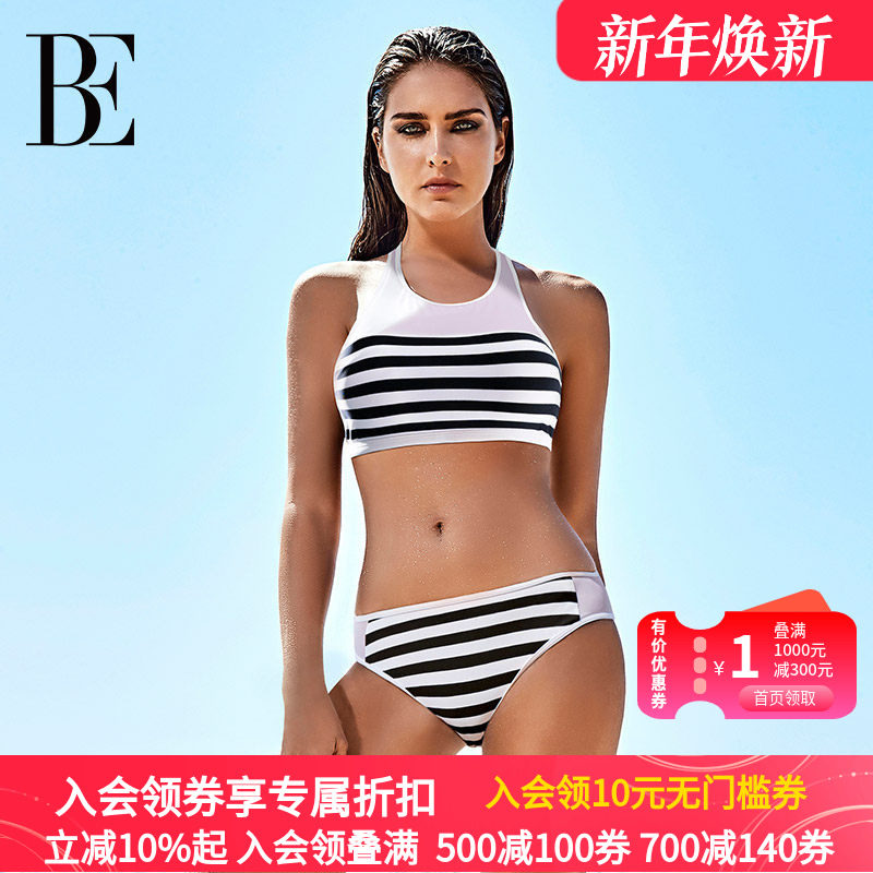 BE范德安泳衣女小胸聚拢黑白条纹拼接修身显瘦ins风比基尼游泳衣