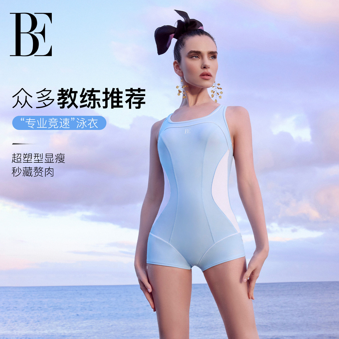 BE范德安泳衣女连体平角保守遮肚显瘦时尚高级感专业训练竞速泳装