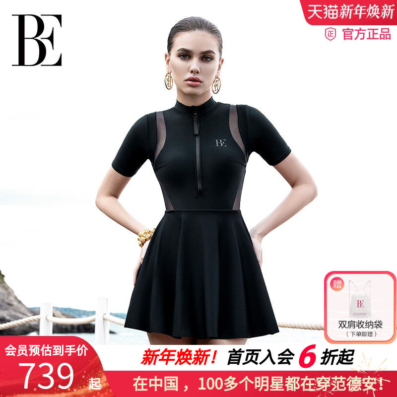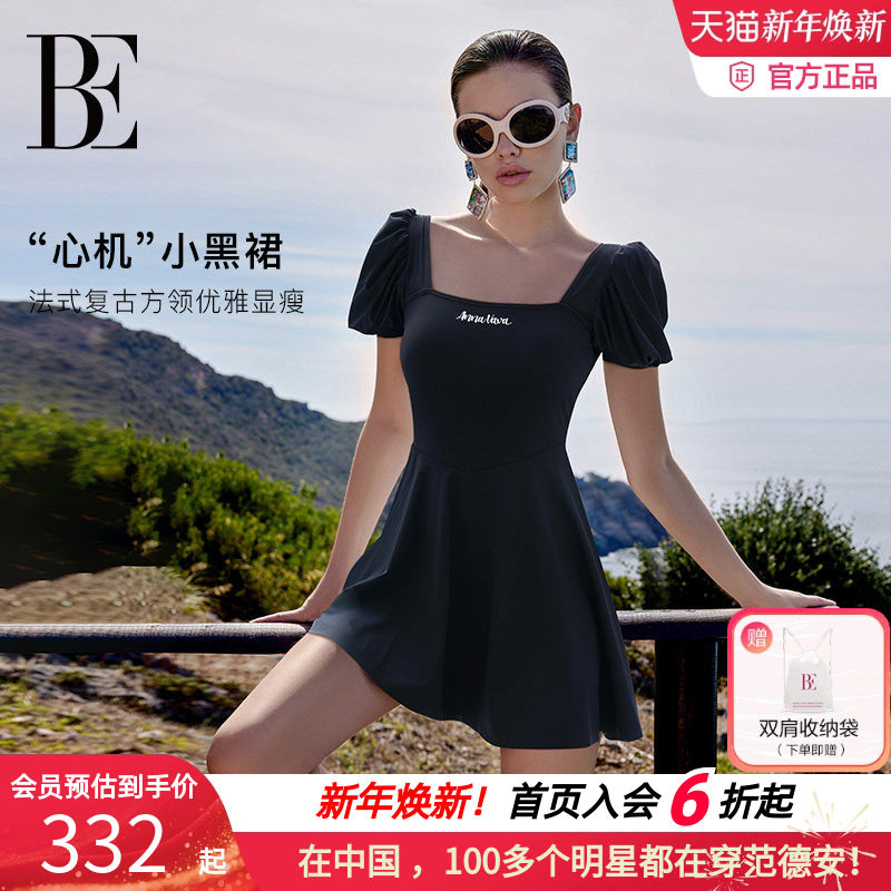 BE范德安2025新款爆款连体裙式平角温泉度假泳衣女士高级防晒法式
