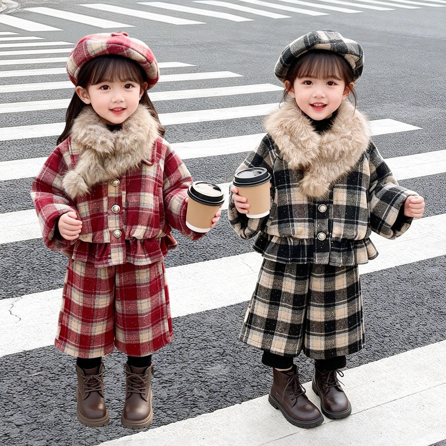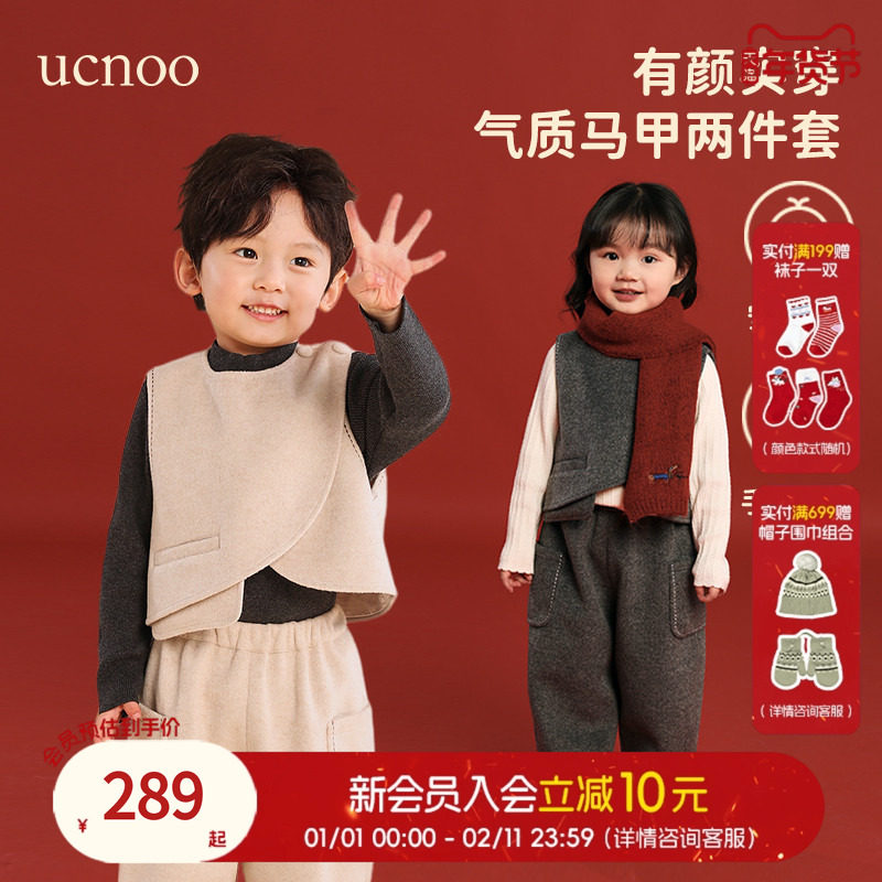 UCNOO与虫儿童马甲阔腿裤两件套女冬新款新年洋气羊毛呢子套装男