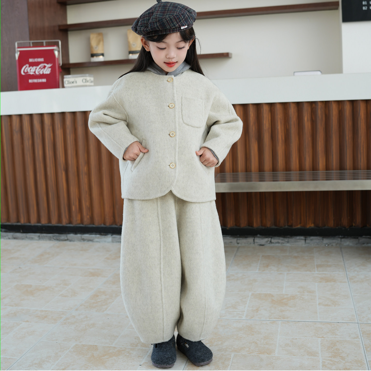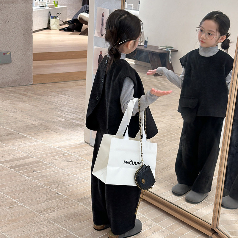 Yumi妈2025冬季时髦儿童套装女童口袋毛呢背心休闲裤两件套25H181