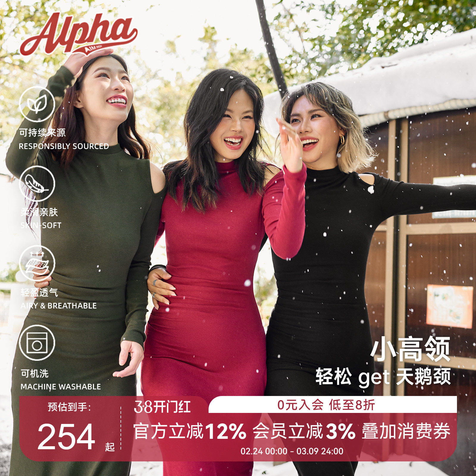 AlphaGym新年镂空收腰红色长裙紧身包臀高弹针织冬季款显瘦连衣裙