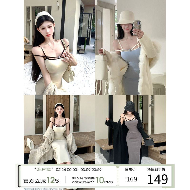【现货】灰尘邓邓 针织吊带连衣裙女冬季内搭长裙包臀裙气质裙子