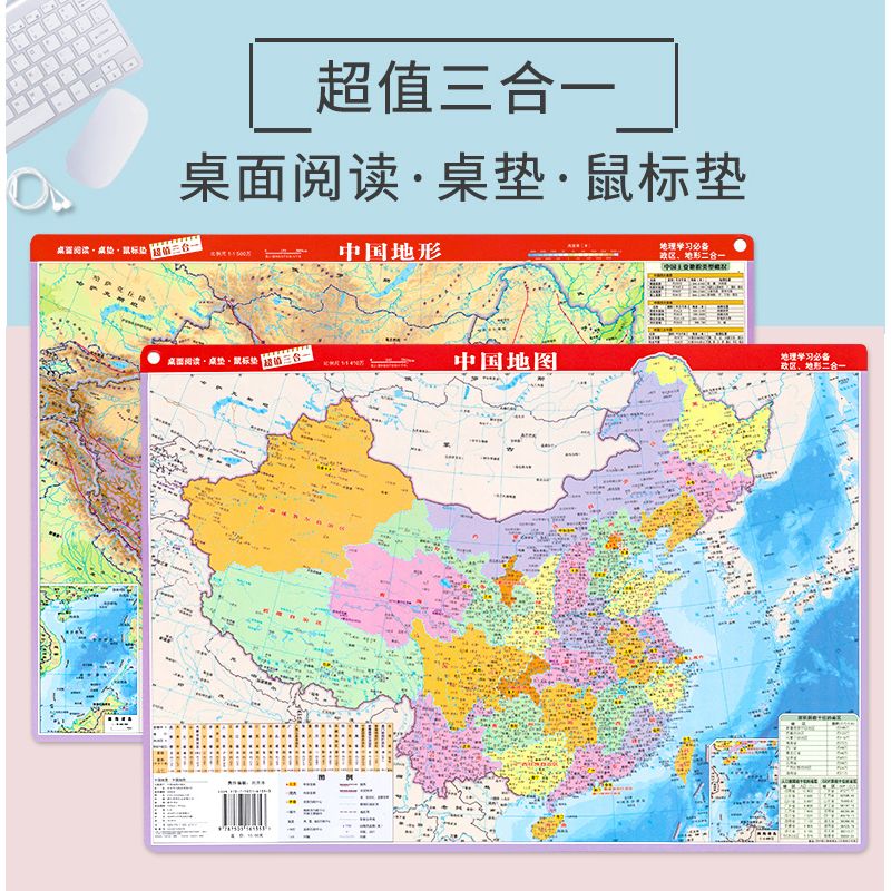 【全新版】中国地图 中国地形 桌面地图 41*28.5cm 地理学习 政区 地形二合一 桌面阅读 桌垫 鼠标垫三合一 中国地图出版社