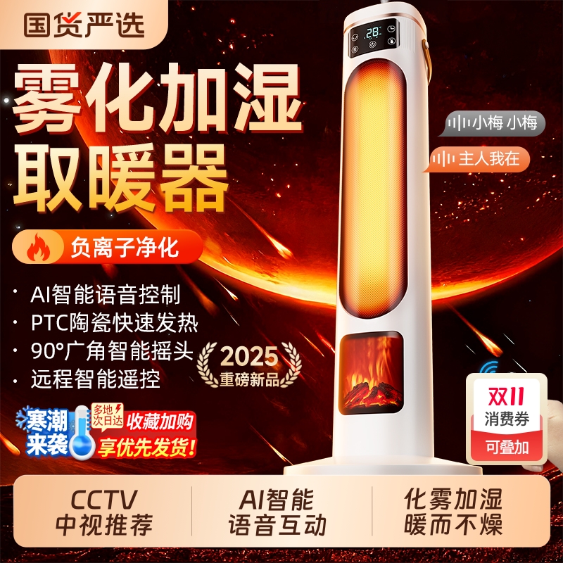 先锋石墨烯取暖器语音加湿速热暖风机立式家用小太阳烤炉2025新款