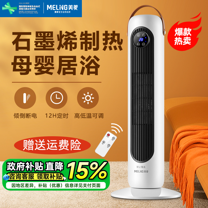 美菱取暖器家用节能省电立式石墨烯暖风机浴室速热小太阳暖气神器