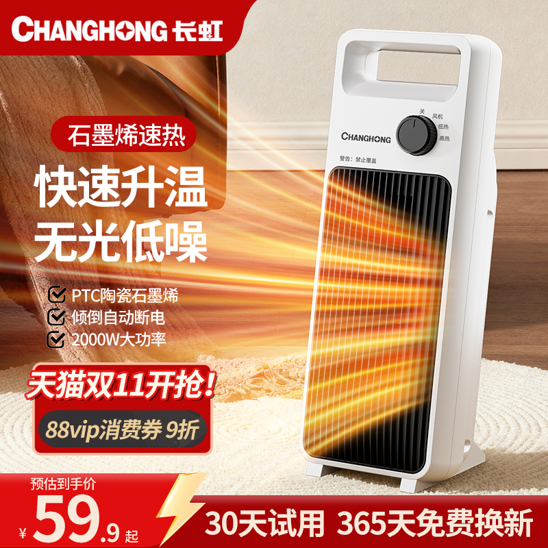 长虹暖风机取暖器家用节能省电立式小太阳浴室速热小型新款电暖气