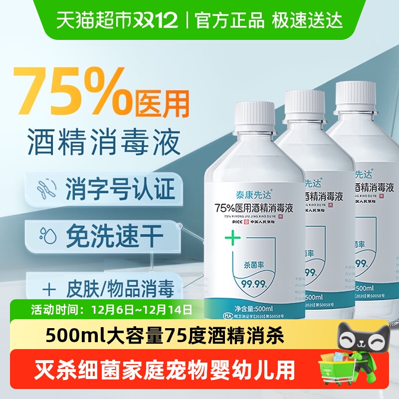 医用75度酒精消毒液75%乙醇杀菌消毒免洗家用洗手液医用消毒液