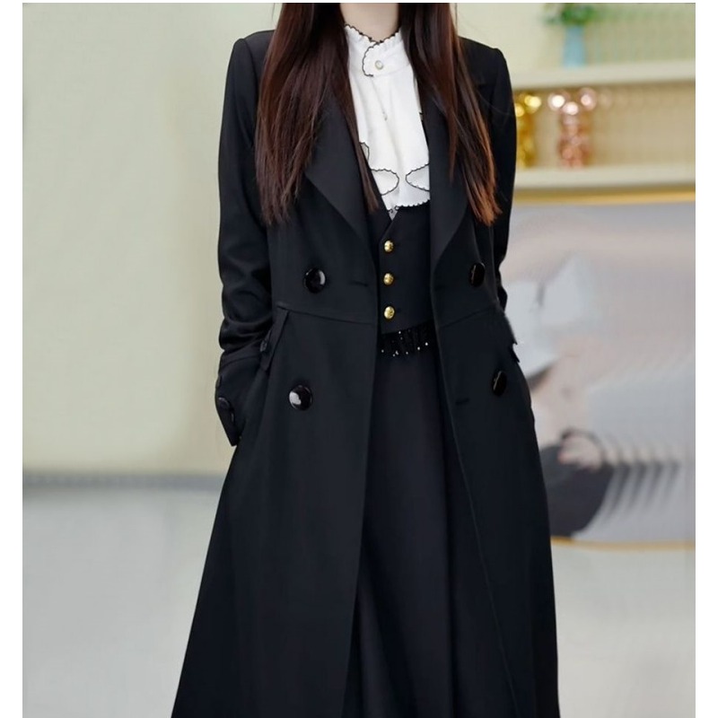 KBNE西装式长款风衣外套女2025秋季新款老钱风显瘦修身学院外衣女
