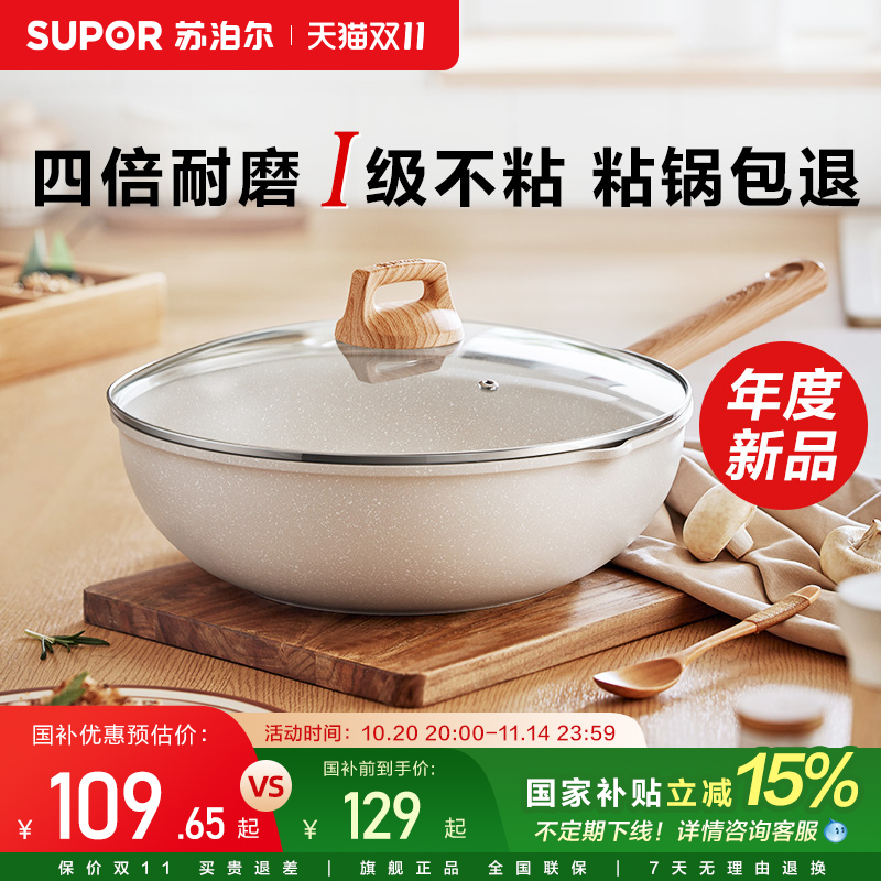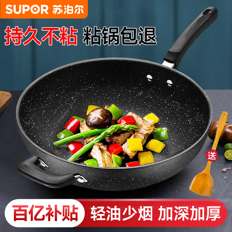 苏泊尔不粘锅炒锅家用炒菜锅电磁炉专用燃气煤气灶适用锅具平底锅