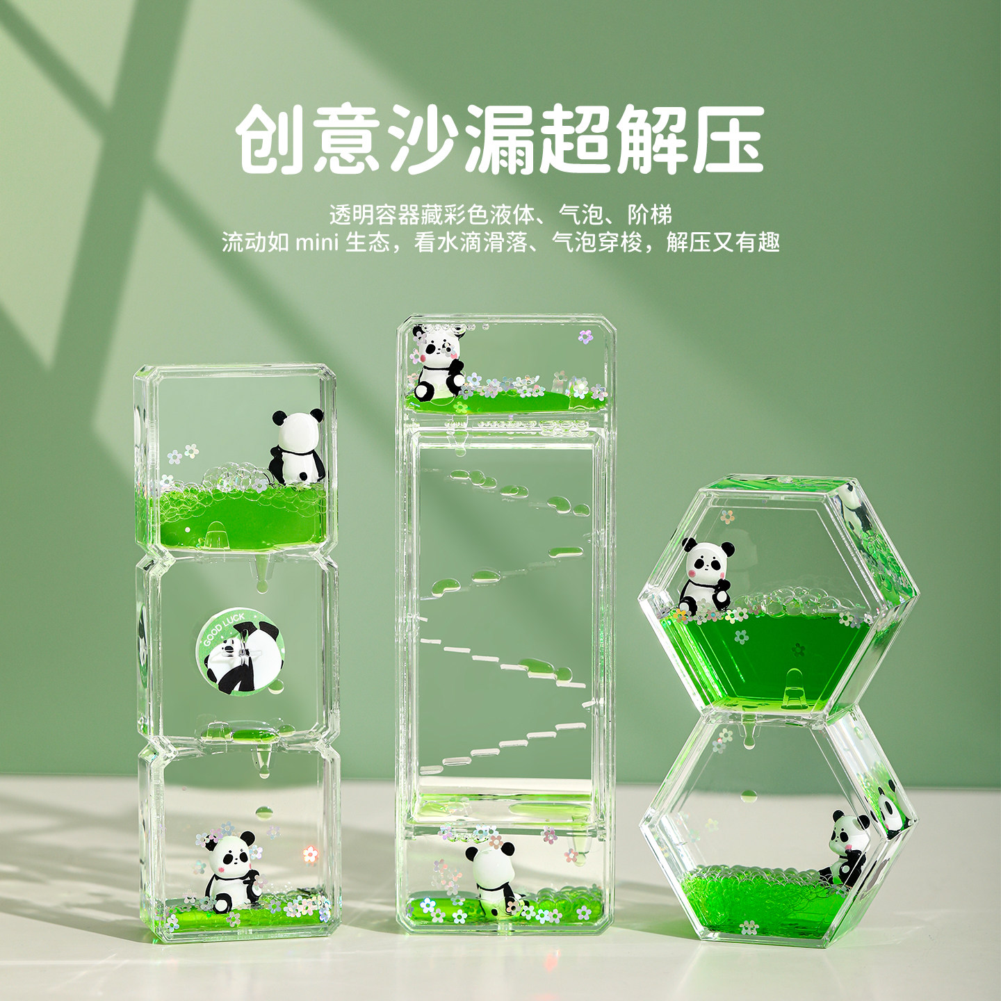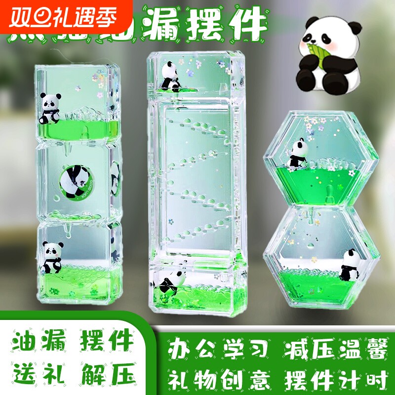 可爱熊猫减压油漏沙漏创意摆件情绪稳定桌面油滴计时器送儿童礼物
