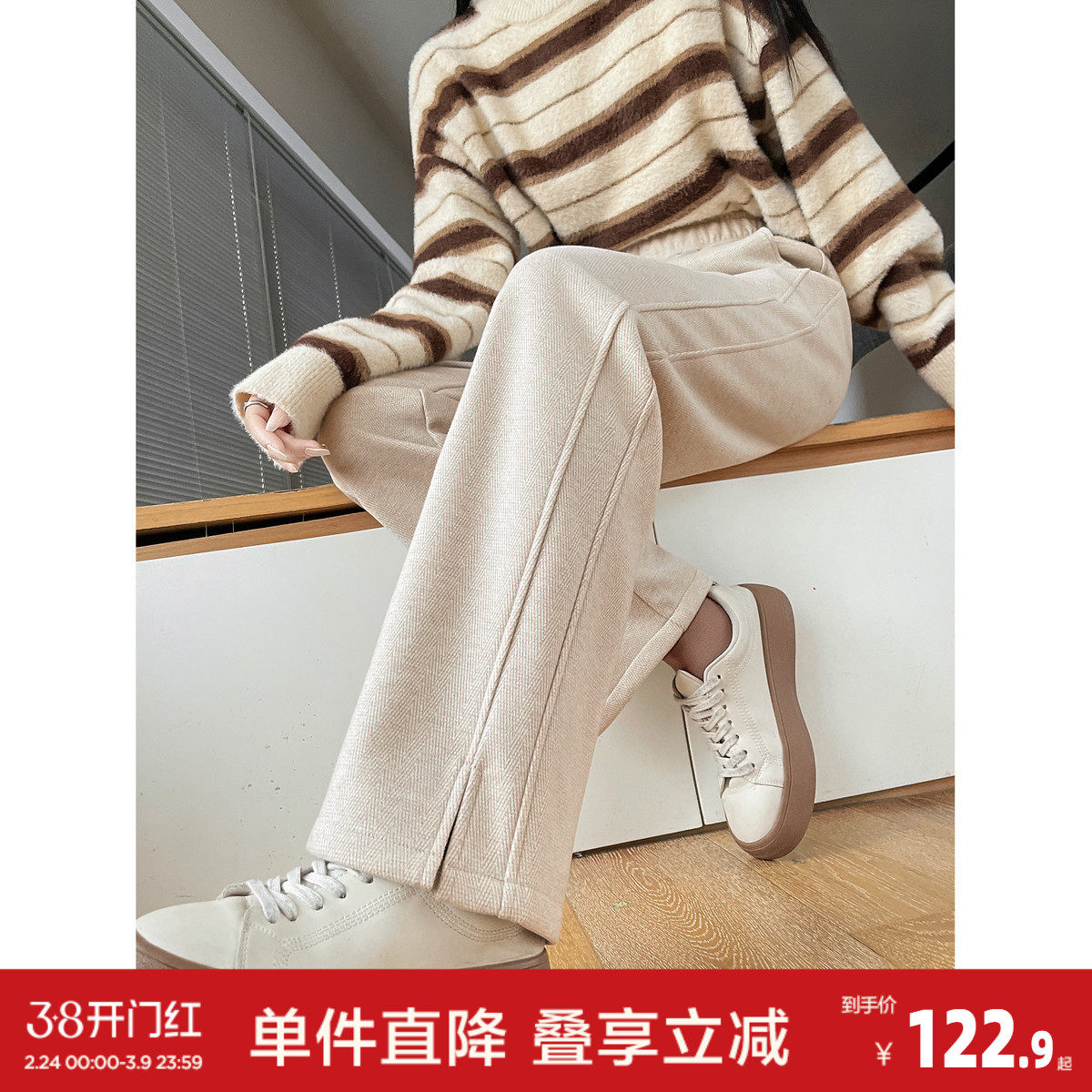 逸阳醋酸羊毛呢窄版直筒裤女加绒冬厚款高腰垂感休闲阔腿糯米裤子