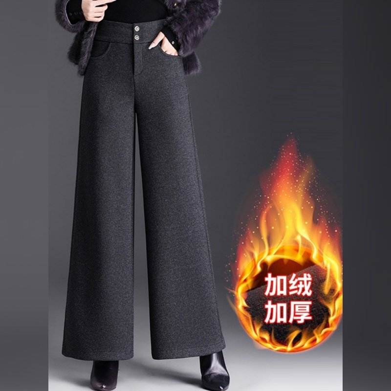 2025毛呢直筒裤加绒加厚长裤女秋冬宽松小个子妈妈裤高腰中年女裤