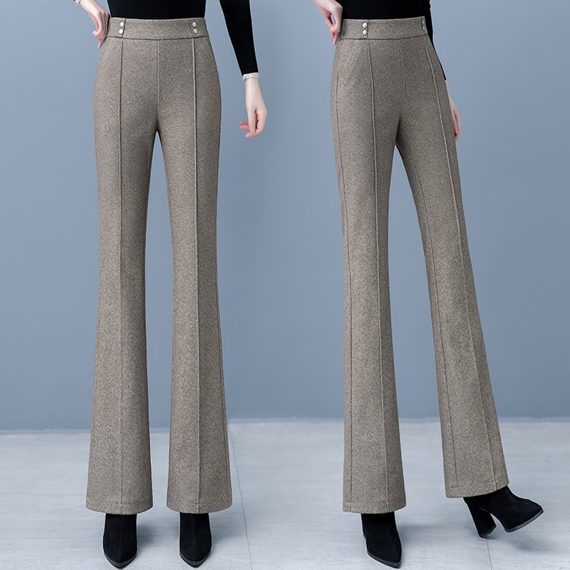 卡其色女裤子2025新款爆款高腰显瘦微喇叭裤春秋高档加厚毛呢女裤