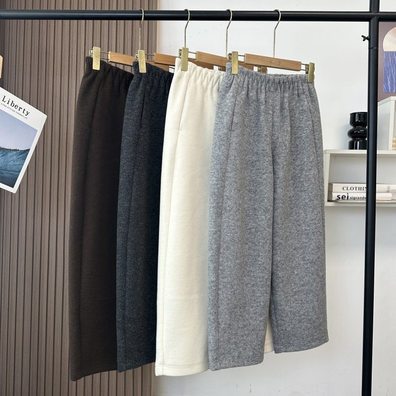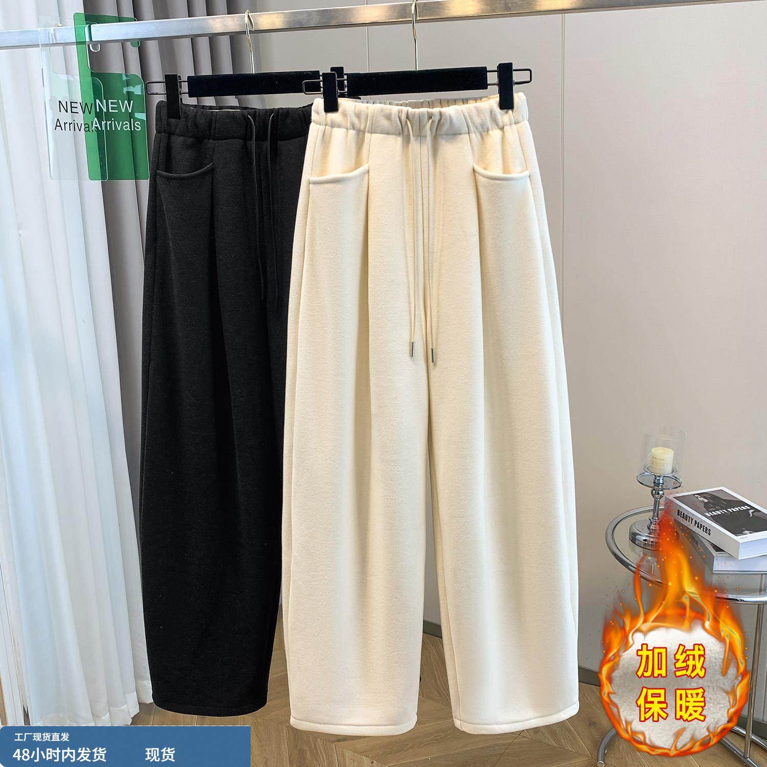 大码女装韩系软糯糯毛呢女裤2025冬季加绒加厚百搭保暖直筒休闲裤