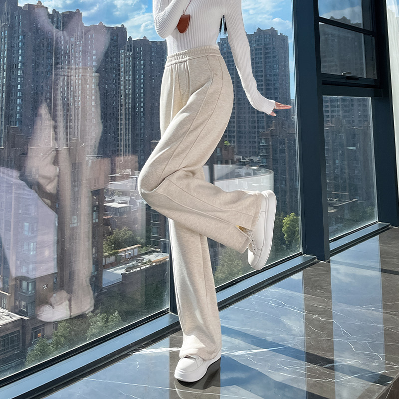 丝艺 高品质含桑蚕丝/山羊绒气质垂感阔腿裤毛呢女裤直筒裤休闲裤