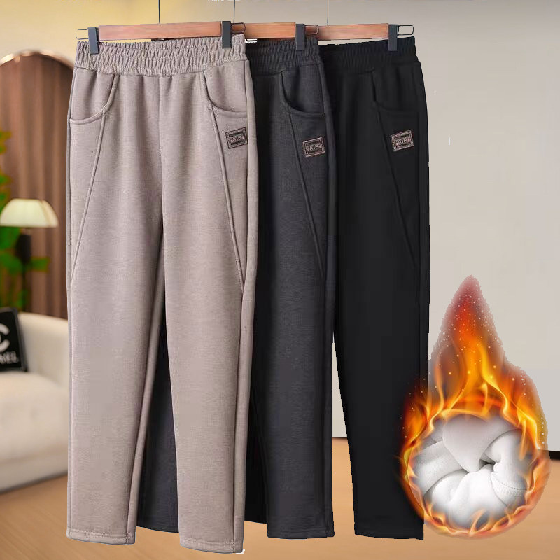 2025新款中老年人女裤冬季加绒加厚毛呢裤子妈妈秋冬款高腰休闲裤