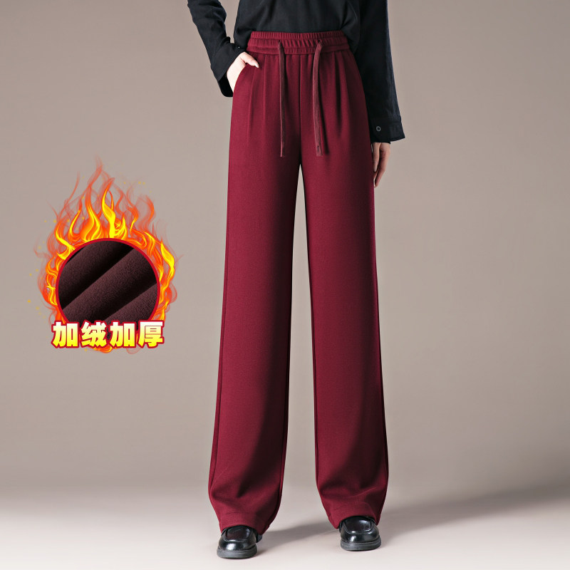 梦舒雅秋冬加绒加厚醋酸羊毛呢女裤窄版阔腿裤垂感百搭直筒西装裤