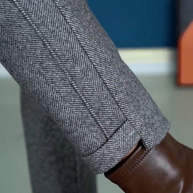 灰色直筒裤女秋冬加绒裤子女冬季加厚人字纹毛呢女裤窄版阔腿裤女