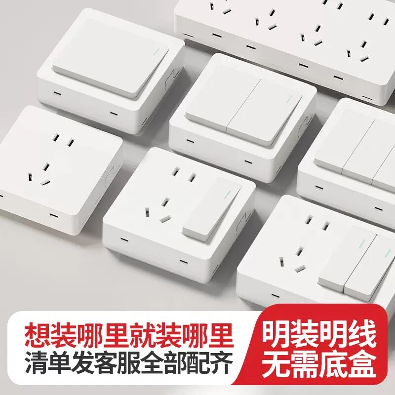 国际电工明装开关插座墙壁明线超薄一开五孔两开多孔家用明装插座