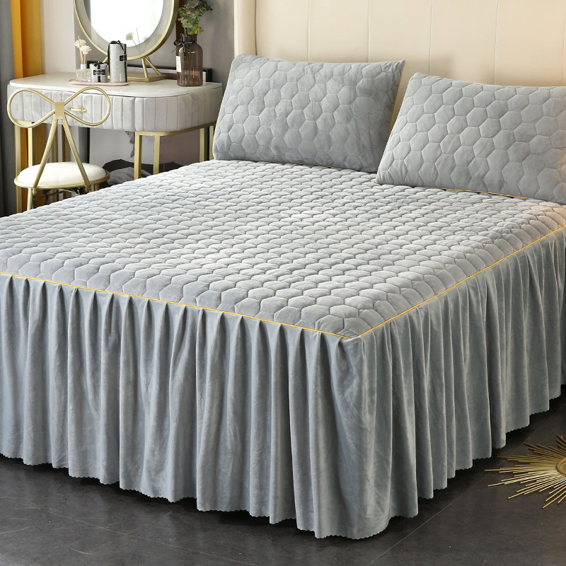 冬季高级感加厚牛奶绒夹棉床裙款单件床笠珊瑚绒高档裙式床单床罩