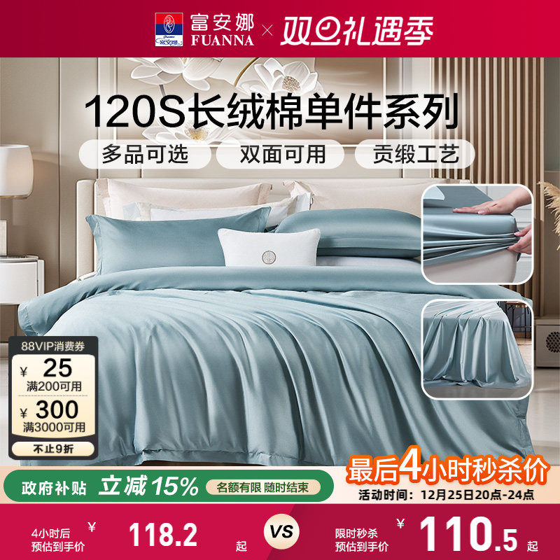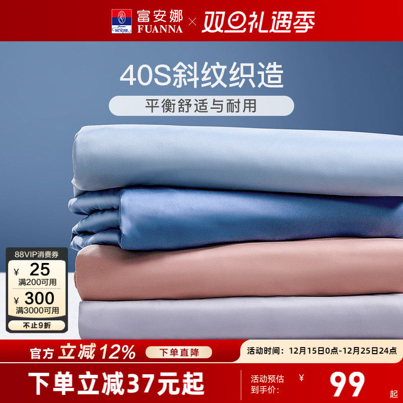 富安娜120S长绒棉单件床笠学生宿舍单人纯棉被套被罩床单枕套秋冬