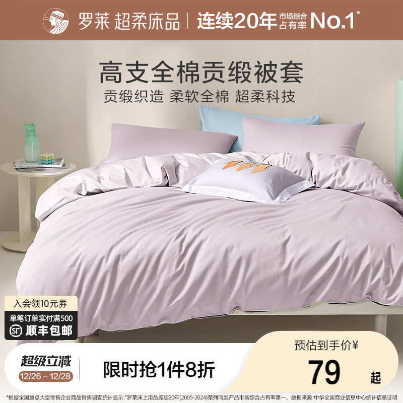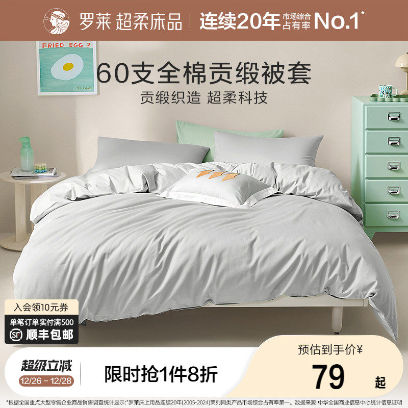罗莱家纺纯棉全棉学生宿舍单人被套被罩拆单件床笠床单60支贡缎
