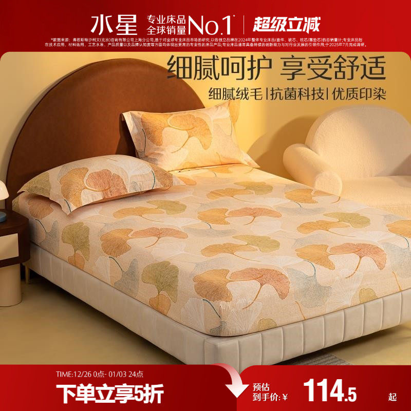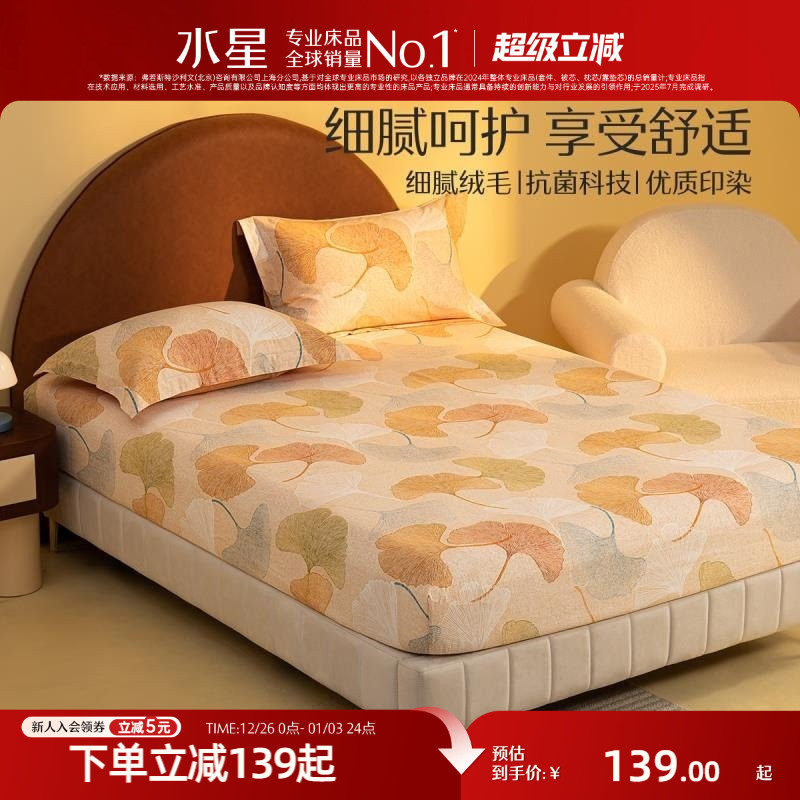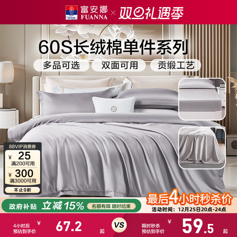 富安娜家纺全棉床单纯棉抗菌床罩防尘单件床笠四季单双人酒店床单